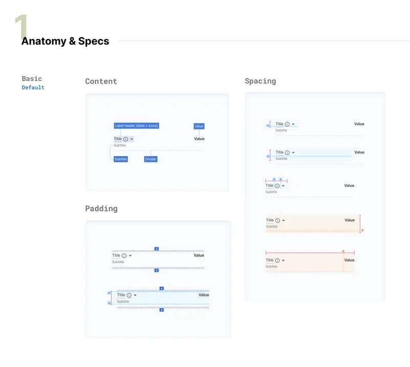 Using a defined template to document, we used states to demonstrate the interactions and showed in-depth documentation on usage guidelines and differences across variants.